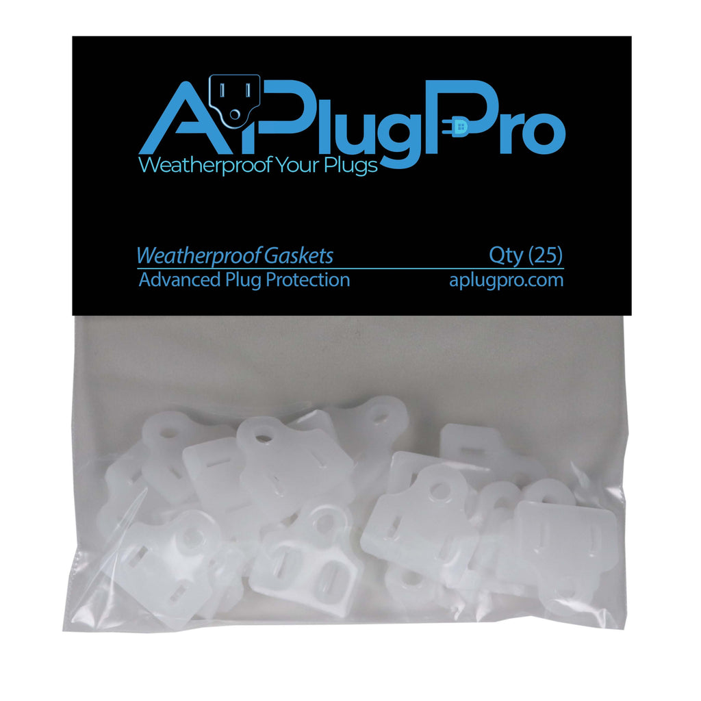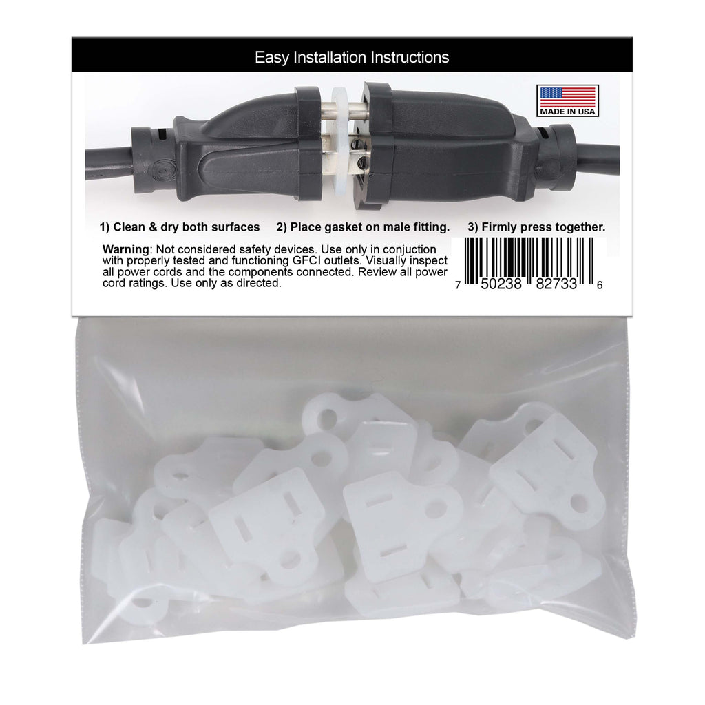 Having trouble keeping your electricity flowing because of the rain? We did too, that's why we invented Weatherproof Gaskets and Weatherproof Plug Covers. Weatherproof Gaskets fit between your plug connections to keep rain and other elements from tripping your GFCIs. Weatherproof Plug Covers fit on the end of any open-ended plug to block moisture from getting in. Using Weatherproof Gaskets and Weatherproof Plug Covers will assist your GFCIs to keep your lights on, even with rain, sleet or snow. These soft, pliable shields can save you hours and hours of time and frustration.