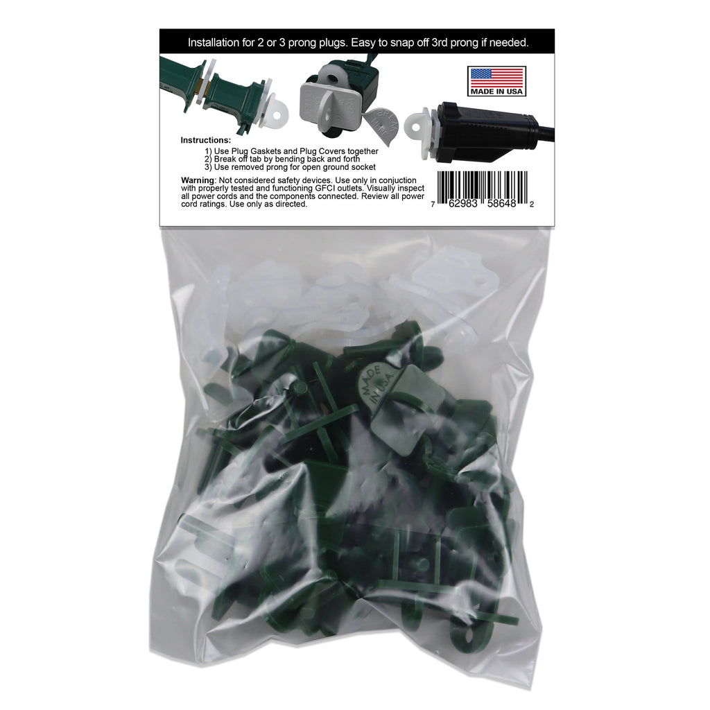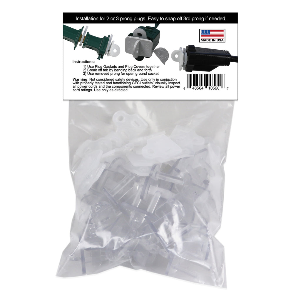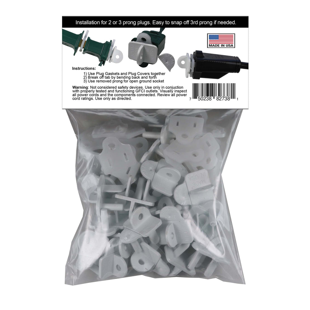 Weatherproof Gaskets and Weatherproof Plug Covers are not only good for Christmas lights but can save you time and money in a number of applications such as hydroponics, outdoor events, ponds, landscaping, construction sites, farms, plant nurseries, fisheries, ranches, breweries, parade floats, campgrounds and many more! Applications are only bound by your imagination.