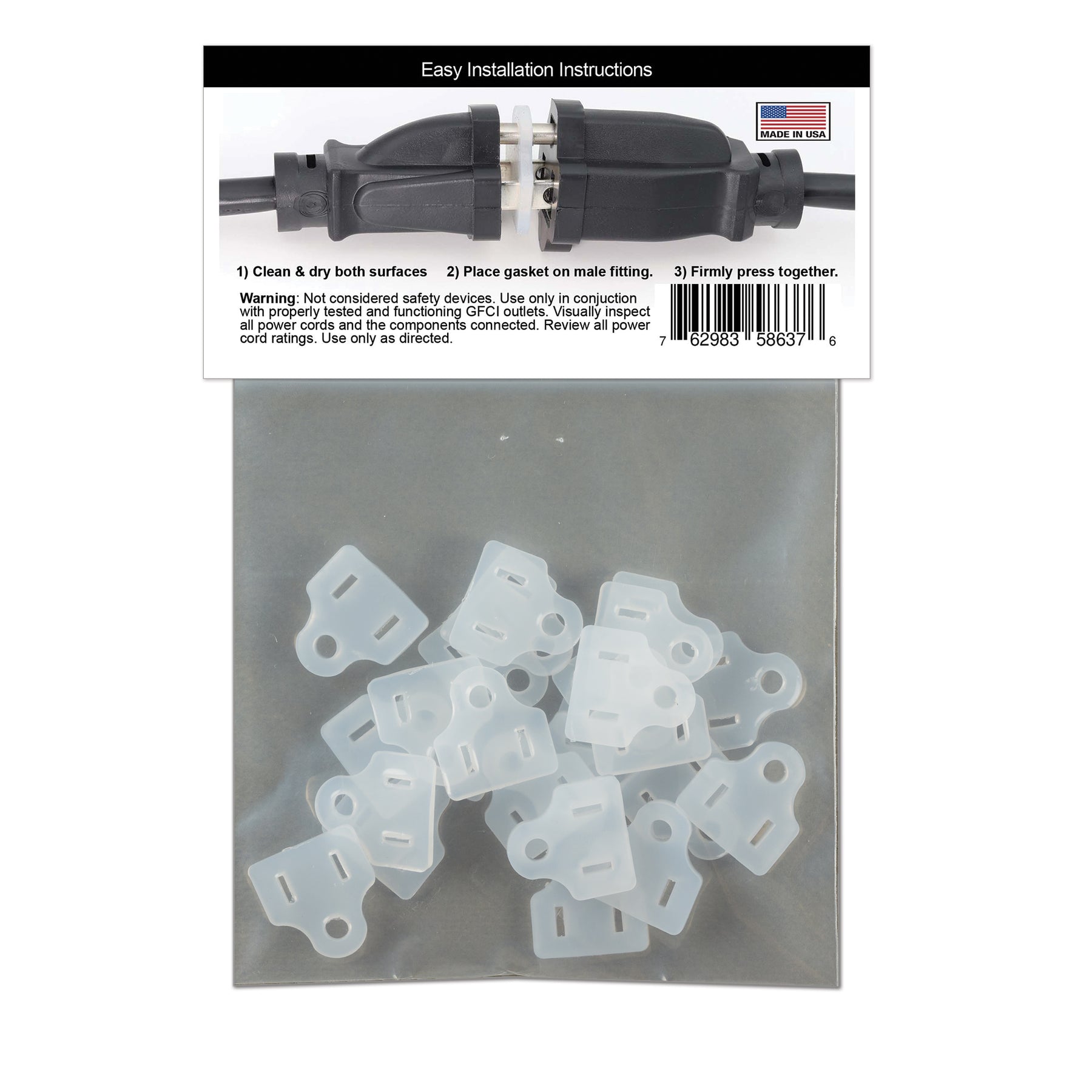 Having trouble keeping your electricity flowing because of the rain? We did too, that's why we invented Weatherproof Gaskets and Weatherproof Plug Covers. Weatherproof Gaskets fit between your plug connections to keep rain and other elements from tripping your GFCIs. Weatherproof Plug Covers fit on the end of any open-ended plug to block moisture from getting in. Using Weatherproof Gaskets and Weatherproof Plug Covers will assist your GFCIs to keep your lights on, even with rain, sleet or snow. These soft, pliable shields can save you hours and hours of time and frustration.