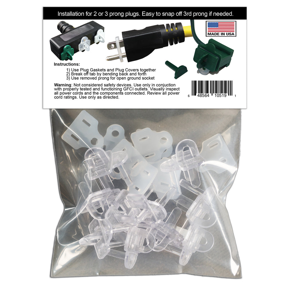 Weatherproof Gaskets and Weatherproof Plug Covers are not only good for Christmas lights but can save you time and money in a number of applications such as hydroponics, outdoor events, ponds, landscaping, construction sites, farms, plant nurseries, fisheries, ranches, breweries, parade floats, campgrounds and many more! Applications are only bound by your imagination.