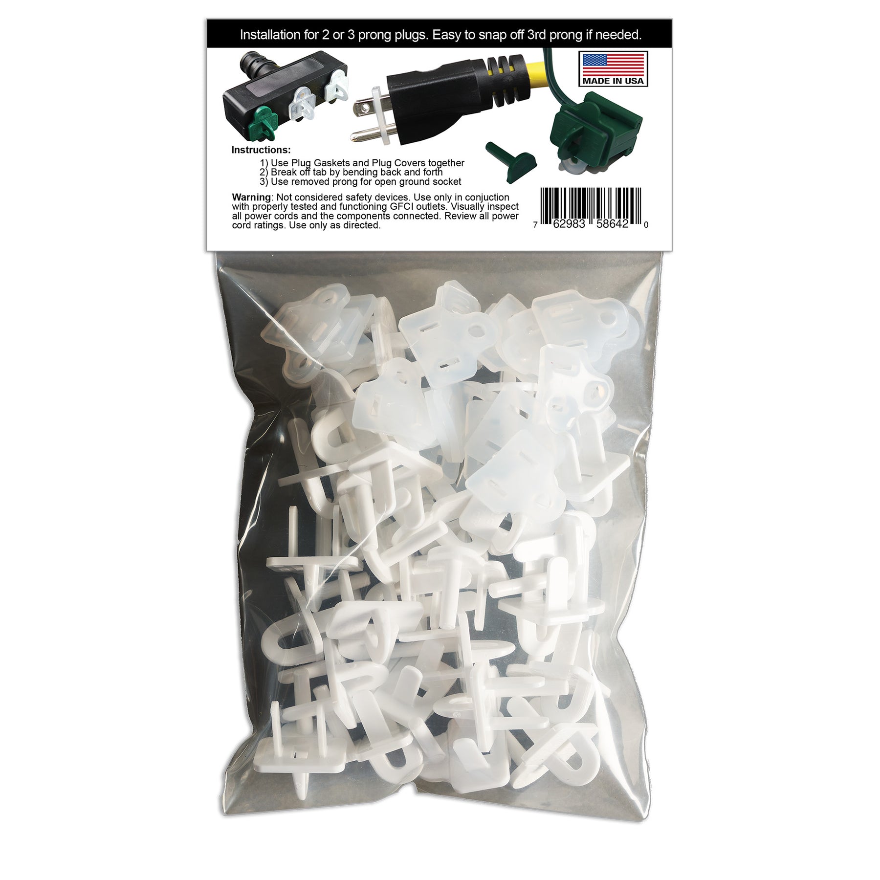 Weatherproof Gaskets and Weatherproof Plug Covers are not only good for Christmas lights but can save you time and money in a number of applications such as hydroponics, outdoor events, ponds, landscaping, construction sites, farms, plant nurseries, fisheries, ranches, breweries, parade floats, campgrounds and many more! Applications are only bound by your imagination.