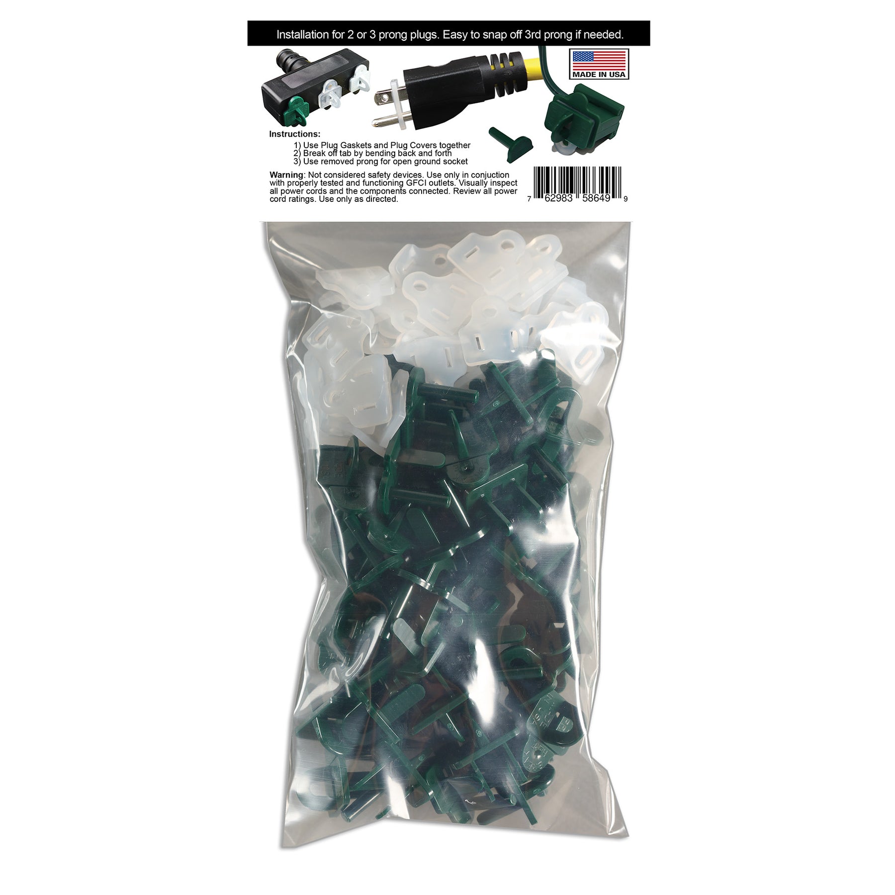 Weatherproof Gaskets and Weatherproof Plug Covers are not only good for Christmas lights but can save you time and money in a number of applications such as hydroponics, outdoor events, ponds, landscaping, construction sites, farms, plant nurseries, fisheries, ranches, breweries, parade floats, campgrounds and many more! Applications are only bound by your imagination.